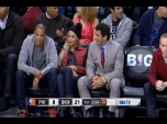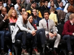Beyoncé, Jay-Z e Russell Wilson foram assistir à partida de basquete no Barclays Center.Reprodução