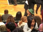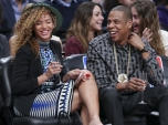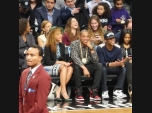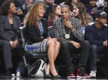 Beyoncé e Jay-Z assistem ao jogo no Barclays Center. Divulgação/Brooklyn Nets